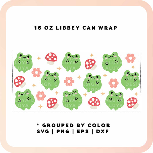 [ SVG Digital File] 16oz Libbey Can Cup Wrap | Kawaii Froggy Wrap SVG