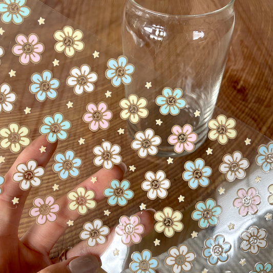 16oz Cup UV DTF Decal | Daisy Smiley Face