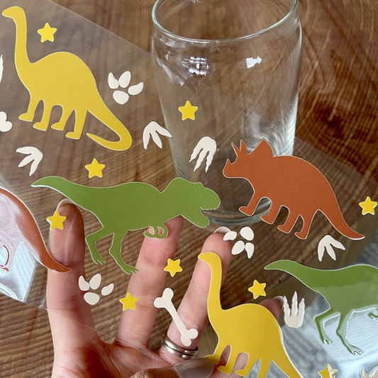 [ Double Sided ] 16oz Cup UV DTF Decal | Boho Dinosaur