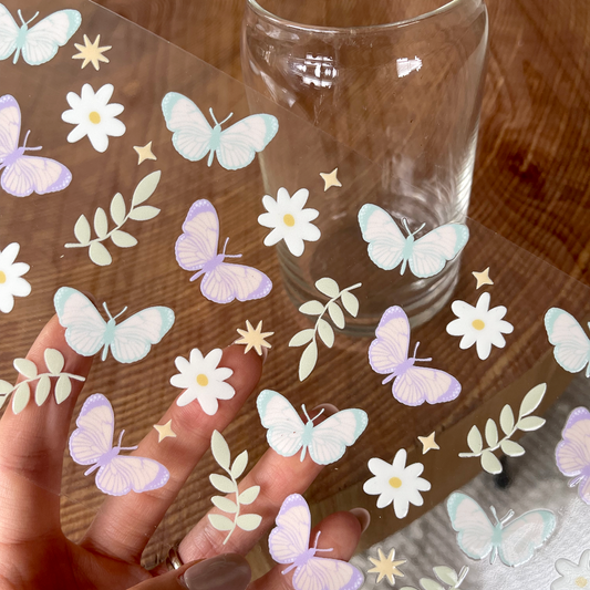 16oz Cup UV DTF Decal | Pastel Butterfly