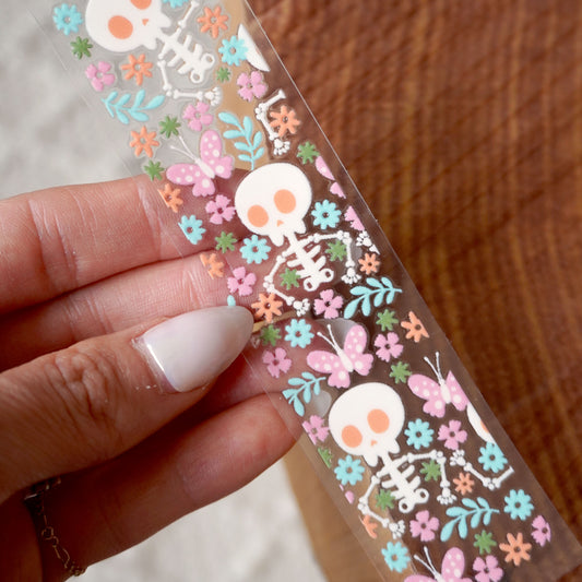 [ Double Sided ] Bookmark UV DTF Decal | Floral Skeleton