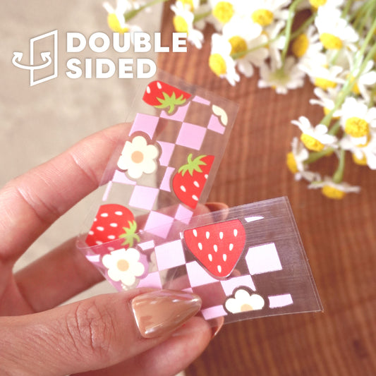 [ Double Sided ] Bookmark UV DTF Decal | Checkered Strawberry