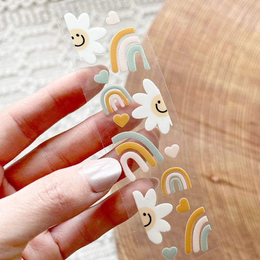 [ Double Sided ] Bookmark UV DTF Decal | Boho Smiley Rainbow