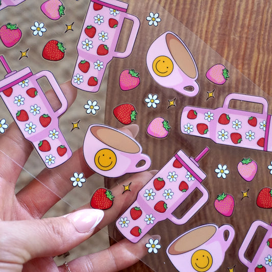 [ Double Sided ] 16oz Cup UV DTF Decal | Strawberry Coffee Time