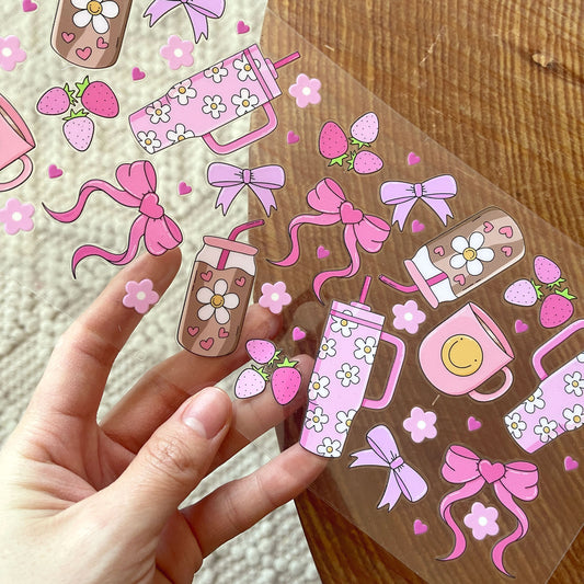 [ Double Sided ] 16oz Cup UV DTF Decal | Girly Bow Tumbler