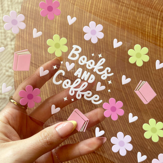 [ Double Sided ] 16oz Cup UV DTF Decal | Books and Coffee