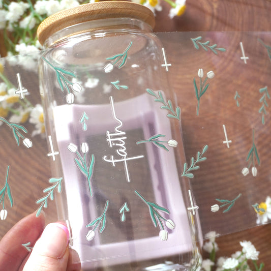 [ Double Sided ] 16oz Cup UV DTF Decal | Faith White Tulip