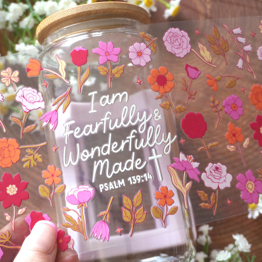 [ Double Sided ] 16oz Cup UV DTF Decal | Fearfully & Wonderfully Made | Bible Verse