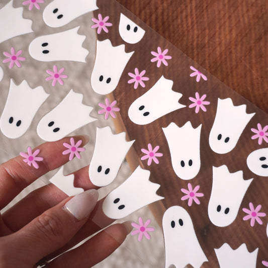 [ Double Sided ] 16oz Cup UV DTF Decal | Cute Flower Ghost