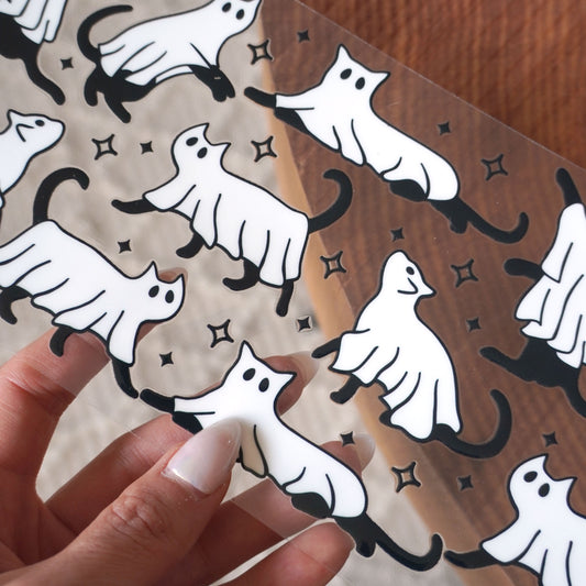 [ Double Sided ] 16oz Cup UV DTF Decal | Cat Ghost