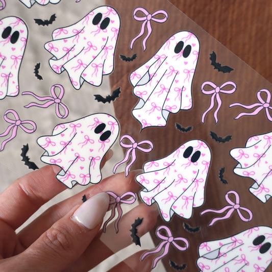 [ Double Sided ] 16oz Cup UV DTF Decal | Girly Bow Ghost