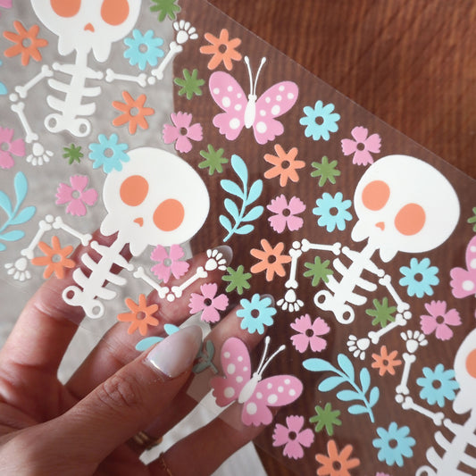 [ Double Sided ] 16oz Cup UV DTF Decal | Floral Skeleton