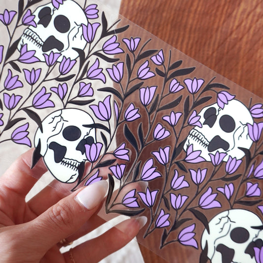 [ Double Sided ] 16oz Cup UV DTF Decal | Skull Purple Flower