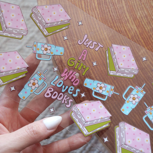 [ Double Sided ] 16oz Cup UV DTF Decal | Just A Girl Who Loves Books
