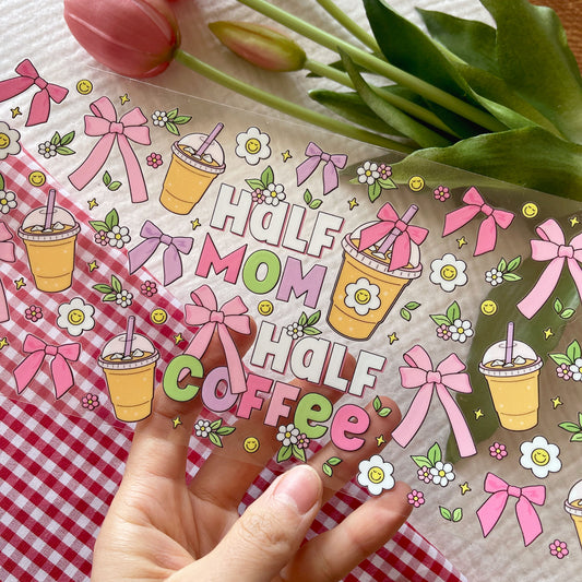 [ Double Sided ] 16oz Cup UV DTF Decal | Half Mom Half Coffee