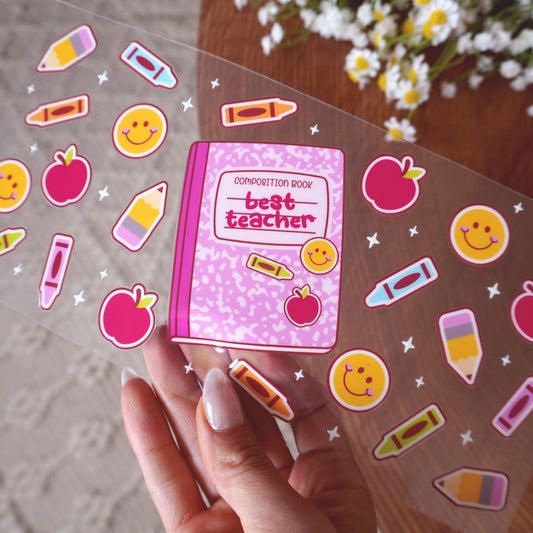 [ Double Sided ] 16oz Cup UV DTF Decal | Teacher Notebook