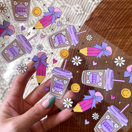 [ Double Sided ] 16oz Cup UV DTF Decal | Coquette Teacher Life