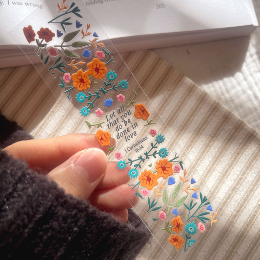 [ Double Sided ] Bookmark UV DTF Decal | Let All That You Do Be Done In Love (Bible Verse)