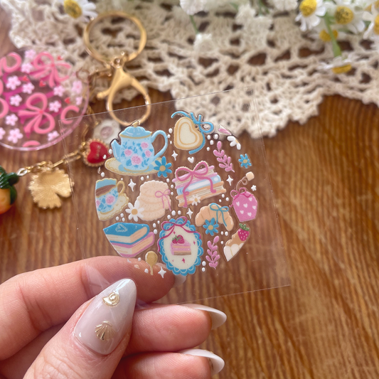 [ Double Sided ] Circle UV DTF Decal | Blue Coquette Tea Time