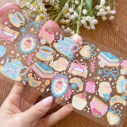 [ Double Sided ] Bookmark UV DTF Decal | Blue Coquette Tea Time