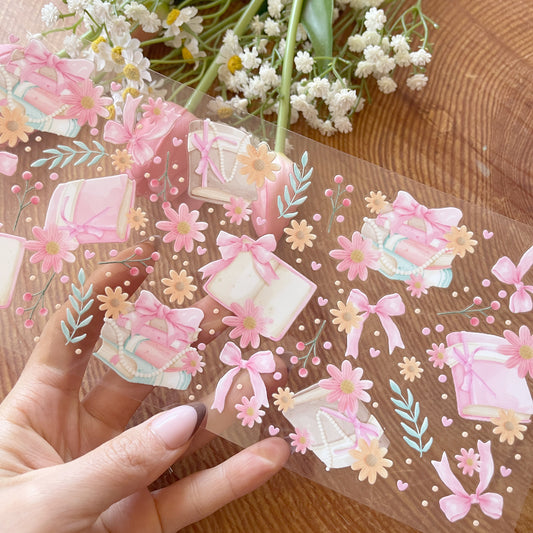 [ Double Sided ] 16oz Cup UV DTF Decal | Romantic Bow & Reading Time