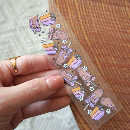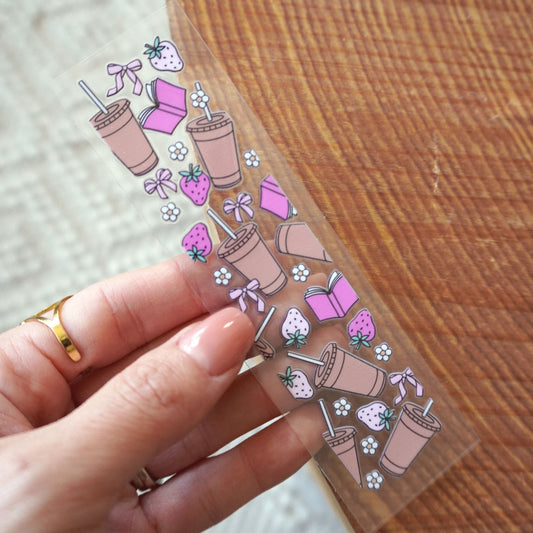 [ Double Sided ] Bookmark UV DTF Decal | Bow, Books & Iced Coffee