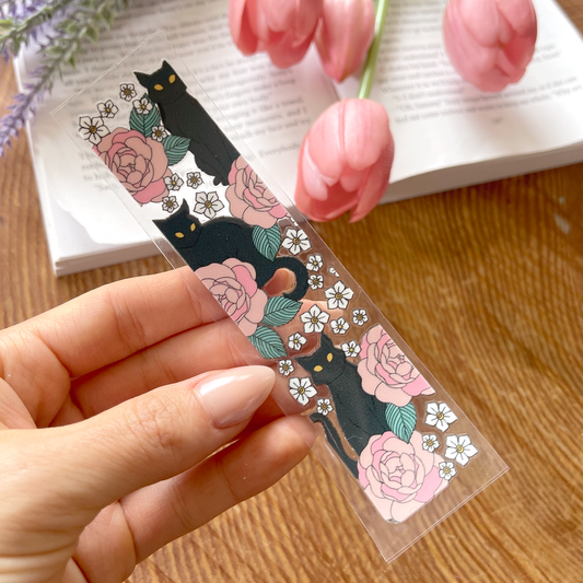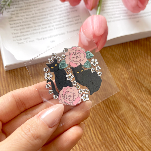 [ Double Sided ] Bookmark UV DTF Decal | Black Cat & Roses