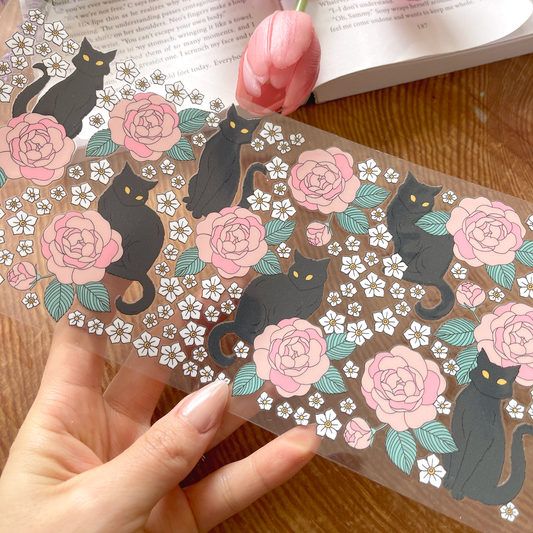 [ Double Sided ] 16oz Cup UV DTF Decal | Black Cat & Roses