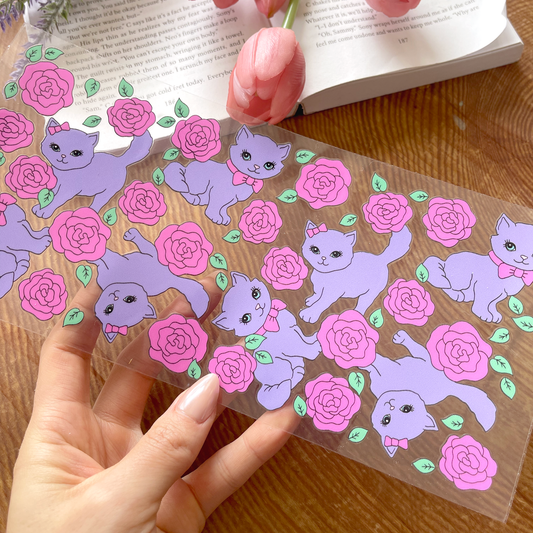 [ Double Sided ] Bookmark UV DTF Decal | Kitty & Roses