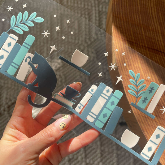 [ Double Sided ] 16oz Cup UV DTF Decal | Cat and Book
