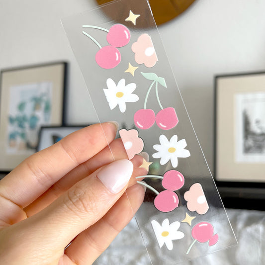 [ Double Sided ] Bookmark UV DTF Decal | Floral Cherry