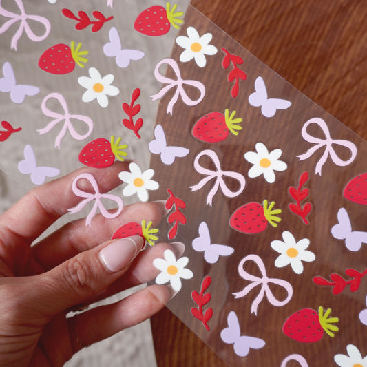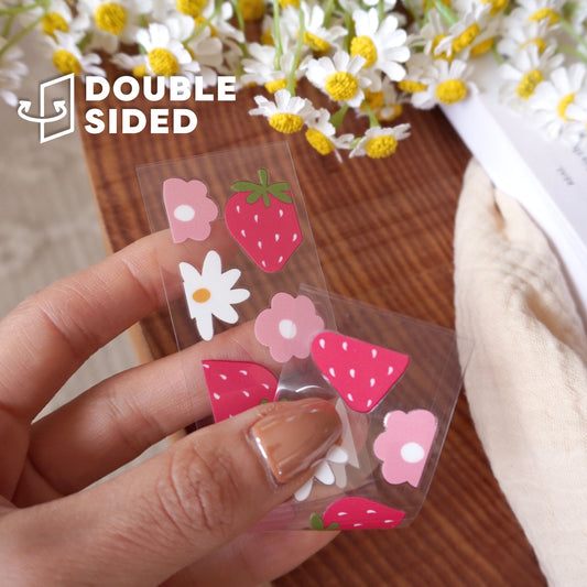 [ Double Sided ] Bookmark UV DTF Decal | Floral Strawberry Field