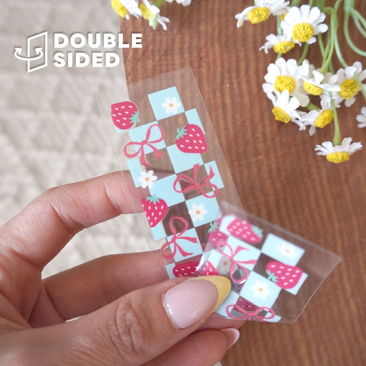 [ Double Sided ] Bookmark UV DTF Decal | Checkered Strawberry