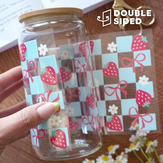 [ Double Sided ] 16oz Cup UV DTF Decal | Checkered Strawberry