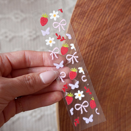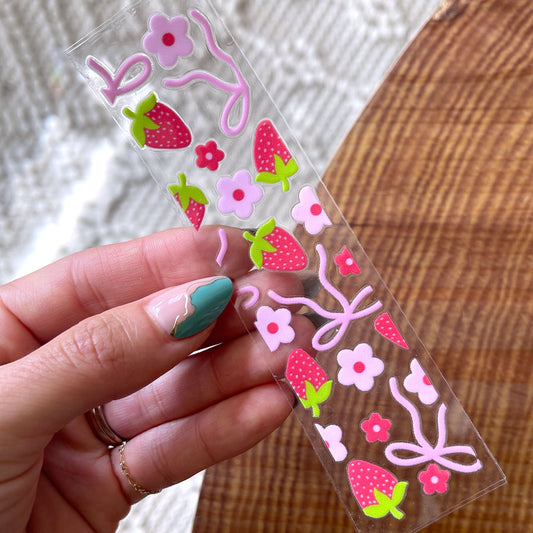 [ Double Sided ] Bookmark UV DTF Decal | Romantic Strawberry