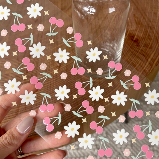 [ Double Sided ] 16oz Cup UV DTF Decal | Floral Cherry