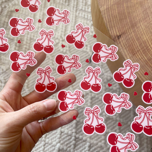 [ Double Sided ] 16oz Cup UV DTF Decal | Cherry Bow & Hearts