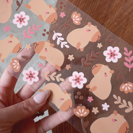 [ Double Sided ] Bookmark UV DTF Decal | Floral Capybara