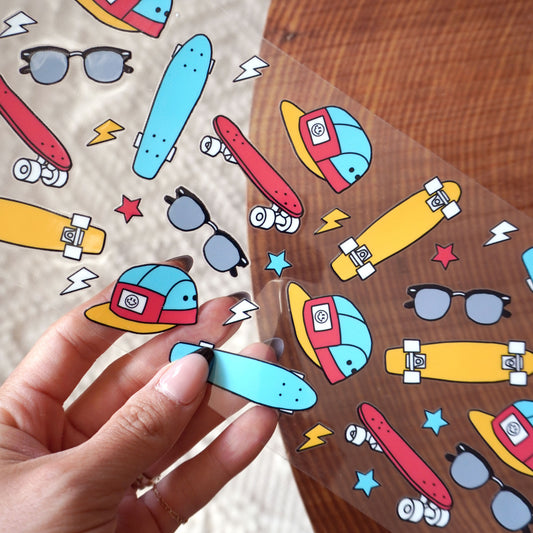 [ Double Sided ] Bookmark UV DTF Decal | Hipster Skateboard