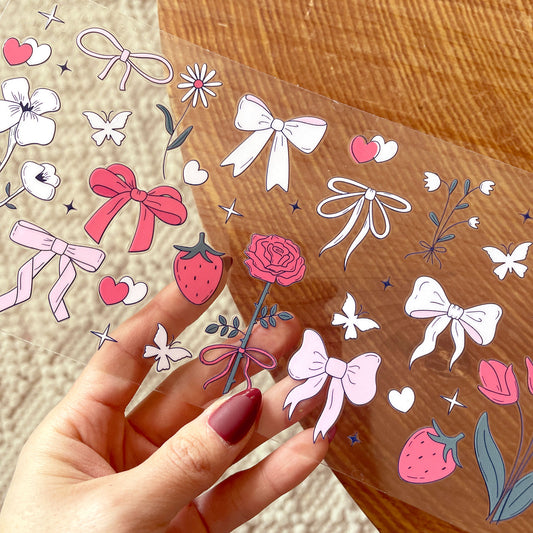 [ Double Sided ] 16oz Cup UV DTF Decal | Romantic Bow