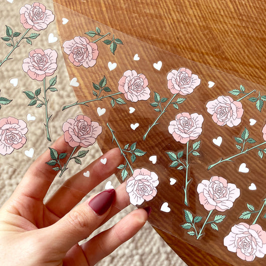 [ Double Sided ] 16oz Cup UV DTF Decal | Romantic Roses