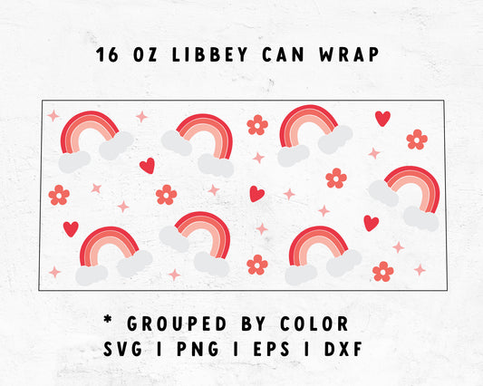 [ SVG Digital File] 16oz Libbey Can Cup Wrap | Pink Heart Rainbow Libbey Can Wrap SVG