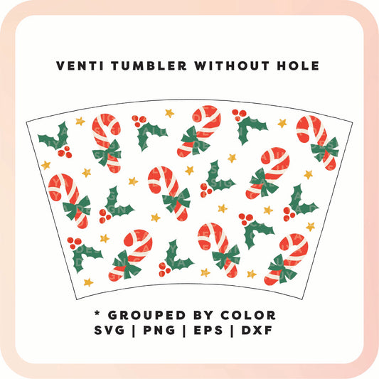 No Logo Venti Cup Wrap SVG | Classic Candy Cane SVG