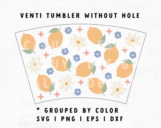 No Logo Venti Cup Wrap SVG | Cute Lemon with Flowers