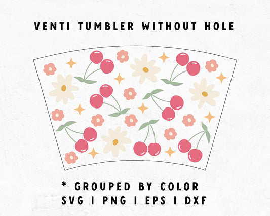 No Logo Venti Cup Wrap SVG | Cute Cherry with Flowers