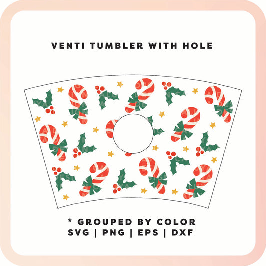 With Logo Venti Cup Wrap SVG | Classic Candy Cane SVG