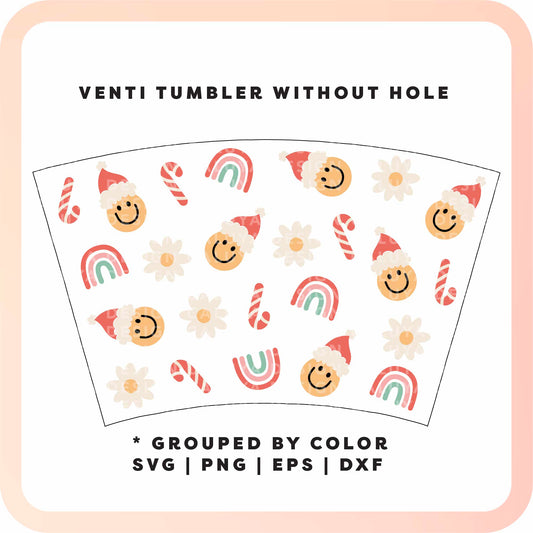 [ SVG Digital File] No Logo Venti Cup Wrap SVG | Groovy Santa Rainbow SVG