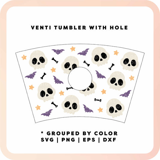 With Logo Venti Cup Wrap SVG | Skull & Bat Halloween Wrap SVG