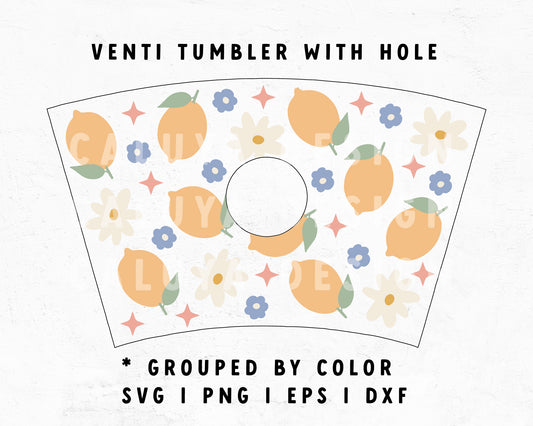With Logo Venti Cup Wrap SVG | Cute Lemon with Flowers