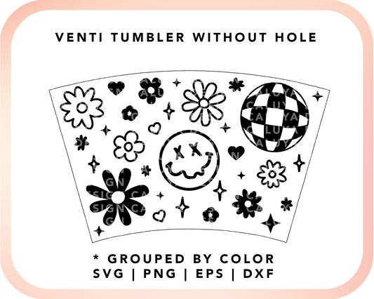 Venti Cup No Hole Valentine Retro Flower Wrap SVG